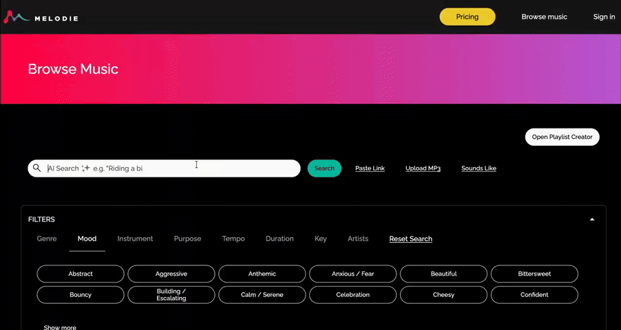 Experience AI search at Melodie: BROWSE MUSIC